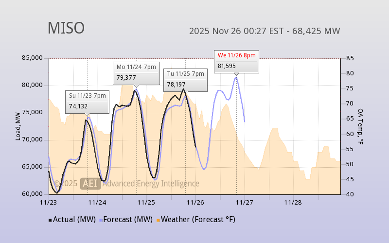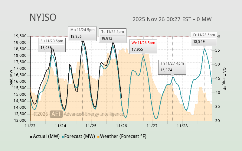 Sign Up for ISO email and SMS alerts to recieve timely notices of ISO demand that could have an impact on your facility's ICAP tag and FY18 demand charge pricing if your facility is on a Time Of Use ("TOU") electric utility meter. Consult your electric utility bill and any commodity agreements you may have for details. AEI now provides coverage for 5 of the 7 major grid operators in the U.S. and will soon be adding ERCOT and SWPP.